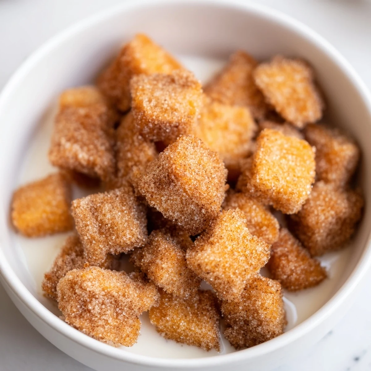 Plating these as a warm breakfast cereal feels casual in a way that a traditional plated French toast never does. It invites you to slow down, dunk things, and eat with your hands if you want to. The cubes stay warm and crispy longer when served this way, and something about the bowl and milk setup makes you feel like a kid who outsmarted the system. It's breakfast theater, basically.