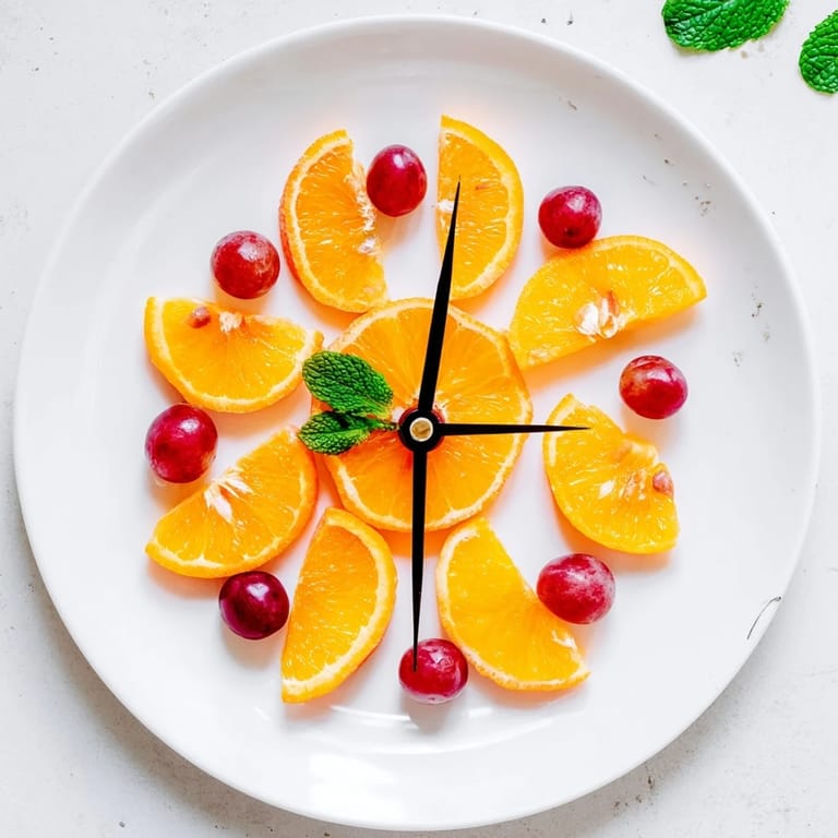 - Use two longer grapes (or two orange segments) at the center as the clocks hands, pointing to your desired time (e.g., 10:10 for visual appeal).