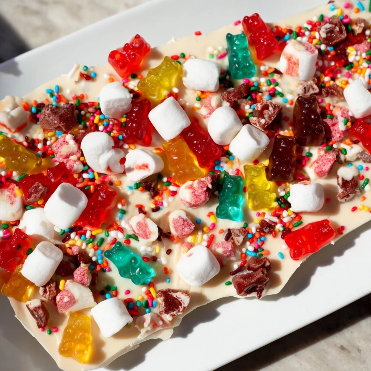 Save to Pinterest A playful, colorful confection featuring chewy gummy bears and crunchy candy canes, perfect for parties or festive gifts.