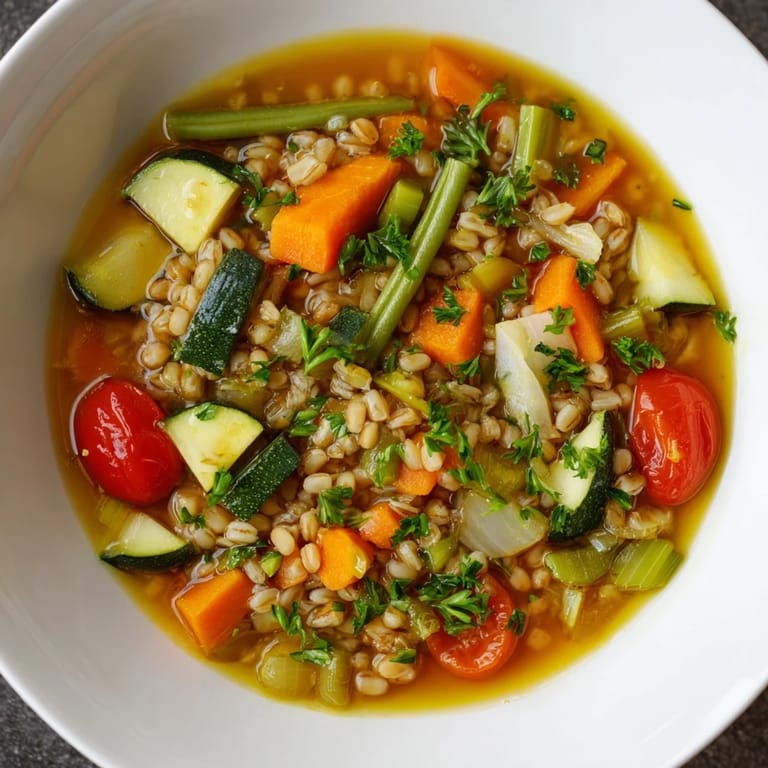 Save to Pinterest A comforting, nourishing soup featuring whole grains and fresh vegetables—perfect for a light lunch or cozy meal any day.
